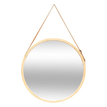 Piękne okrągłe lustro w naturalnej drewnianej ramie bambus na pasku