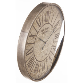 Zegar ma okrągły kształt . Cyferblat za szybą i wyposażony w cichy mechanizm, ma nostalgiczny metalową obręcz i wskazówki! Bardzo ciepła, będzie dobrze komponować się z neoindustrialnymi przedmiotami dekoracyjnymi.