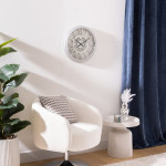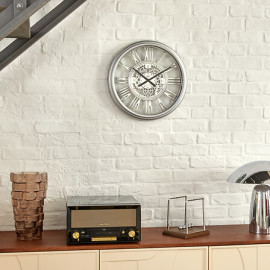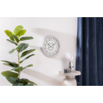 Duże wycięte cyfry rzymskie i ozdobne czarne wskazówki na białym cyferblacie sprawiają, że zegar jest czytelny i świetnie sprawdzi się na każdej ścianie.