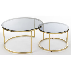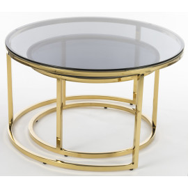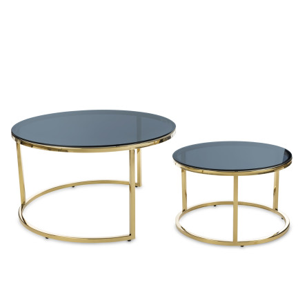 Stoliki na złotej podstawie blat szkło hartowane ciemne