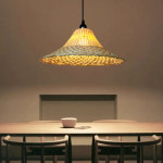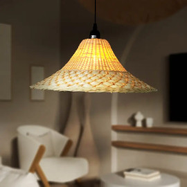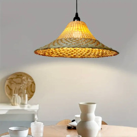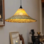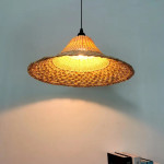 Ręcznie robiona bambusowa lampa w kształcie kapelusze, słomkowy kapelusz tworzy dobrą atmosferę.