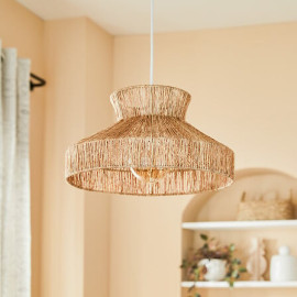 - Lampa wisząca przypadnie do gustu miłośnikom naturalnych materiałów! Dzięki nowoczesnemu wzornictwu i dużej średnicy, jej abażur z rafii idealnie nadaje się do oświetlenia jadalni lub sypialni ciepłym światłem. Regulowana wysokość pozwala na dopasowanie lampy do indywidualnych potrzeb, a możliwość wyposażenia jej w żarówkę o ciepłej bieli dodaje przytulnego charakteru! Uzupełnij wystrój, wybierając harmonijnie dopasowane dodatki z juty lub hiacynta wodnego.