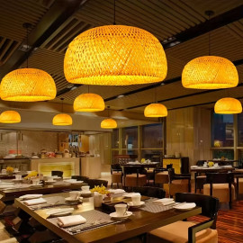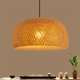 - Ta wyjątkowa lampa wisząca, wykonana z naturalnego, ręcznie plecionego bambusa, wnosi do wnętrza ciepło, teksturę i przytulną atmosferę. Jej organiczny, falisty kształt przypominający kapelusz (często spotykany w stylu japońskim lub boho) jest nie tylko źródłem światła, ale także stylowym elementem dekoracyjnym. Pleciona struktura delikatnie rozprasza światło, tworząc piękne, nastrojowe cienie, idealne do sypialni, salonu, jadalni, a nawet kawiarni.
