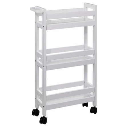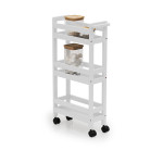 Wąski regał łazienkowy/kuchenny na kółkach, 3 półki, biały, MDF – Oszczędność Miejsca i Styl