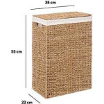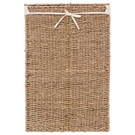 Stylowy, prostokątny kosz na pranie z naturalnej trawy morskiej 40 L to idealne rozwiązanie do przechowywania brudnej bielizny, które wprowadzi do Twojego wnętrza naturalny urok w stylu boho. Dzięki swojemu wąskiemu, ustawnemu kształtowi doskonale sprawdzi się nawet w niewielkich przestrzeniach łazienki, sypialni czy pralni.